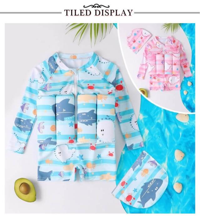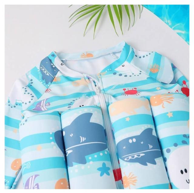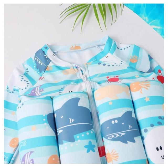 | ・子供用フロートスーツ ・ラッシュガードに浮力を助けるスポンジが入っています。 ・お子様が初めての泳ぎに挑戦する時、浮き方やカラダのポジションなどを学べるようにサポートするためのグッズです。 ・腕周りは自由度が高く動きやすい設計で、水かきの練習をするために最適です。 | |