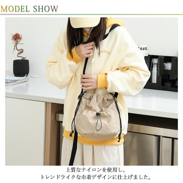 ショルダーバッグ 大人 斜めがけ レディース ナイロン ミニバッグ ミニ ショルダーバック ナイロンポシェット ブラック 巾着 小さいサイズ 巾着ショルダーバッグ 斜めがけバック 黒 カーキ モカ ベージュ