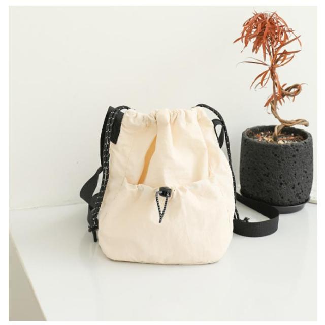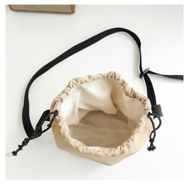 | ゆるい絞り巾着が魅力な、ナイロンのショルダーバッグ。 上質なナイロンを使用し、トレンドライクな巾着デザインに仕上げました。 小さいサイズながら、長財布もしっかり収納可能! トレンド感のある四角いフォルムの巾着が、オトナコーデにアクセントをプラス。 | |