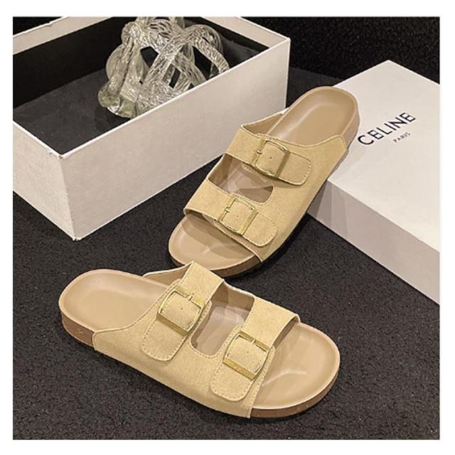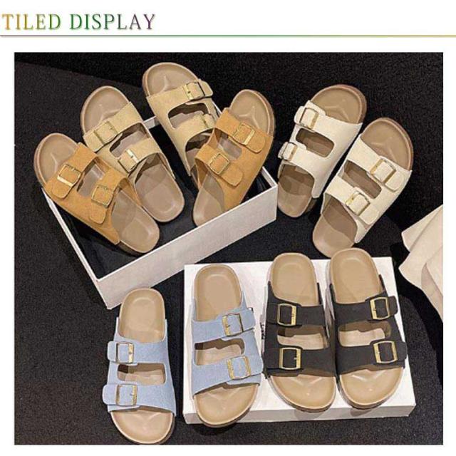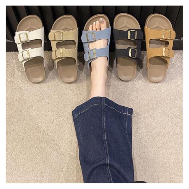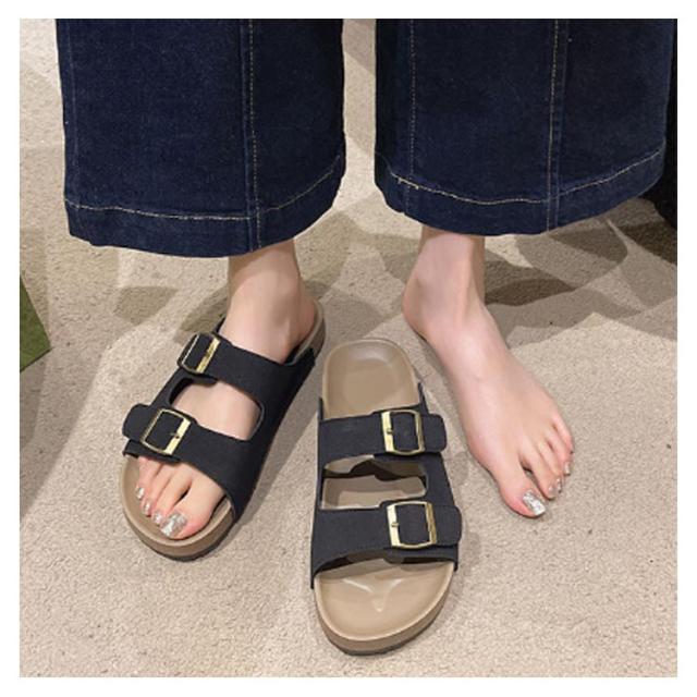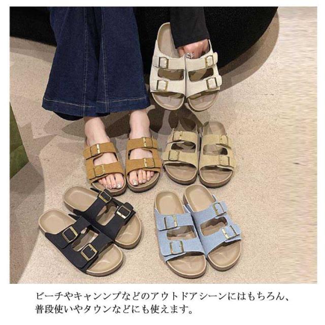 厚底 歩きやすい コンフォートサンダル ぺたんこ サンダル ゴールドバックル スリッパ カジュアル レディース 楽ちん サンダル 大きいサイズ 幅広 甲高 履きやすい フラットサンダル ワンマイルシューズ 楽ちん