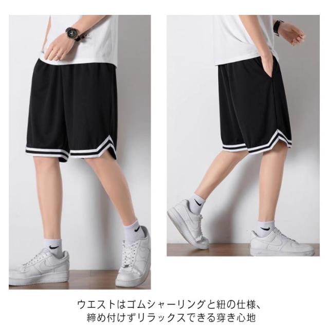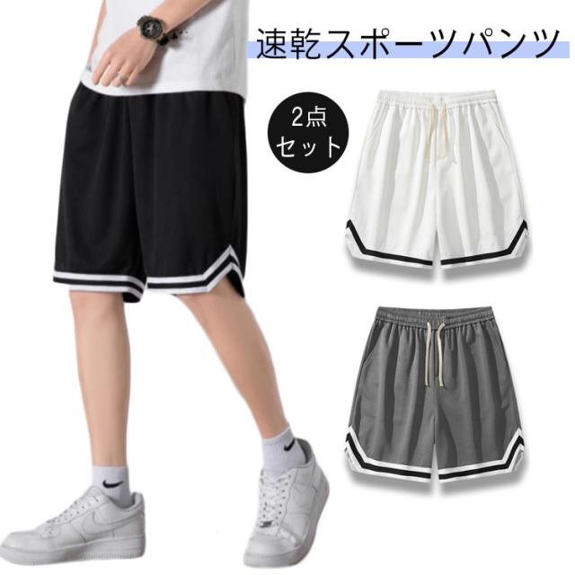 ハーフパンツ 部屋着 バスパン ショートパンツ 速乾 2点セット 運動着 スポーツウェア 送料無料 ズボン 短パン バスケットパンツ バスケパンツ 無地 スポーツ 5分丈 ランニング トレーニング 膝上 メンズ ジュニア ジャージ 運動会 体育祭 通気 半ズボン バスケ