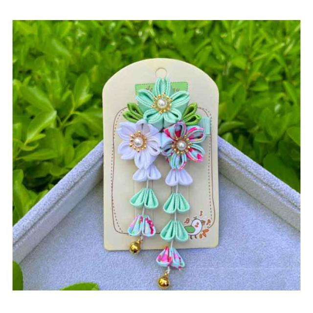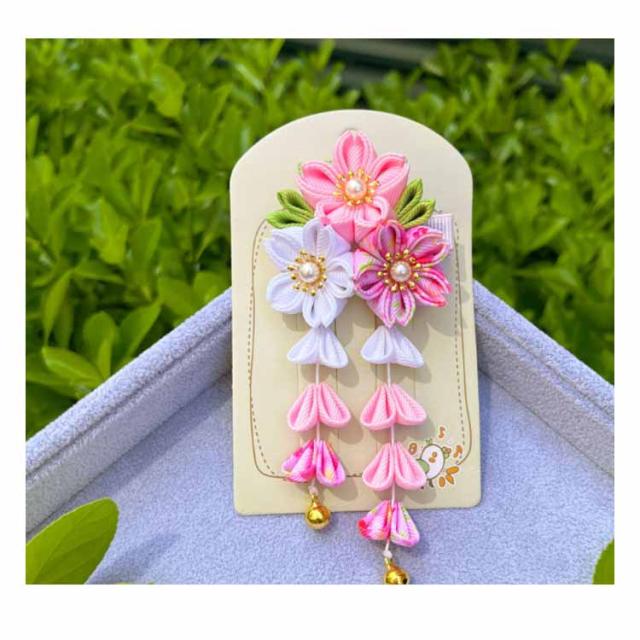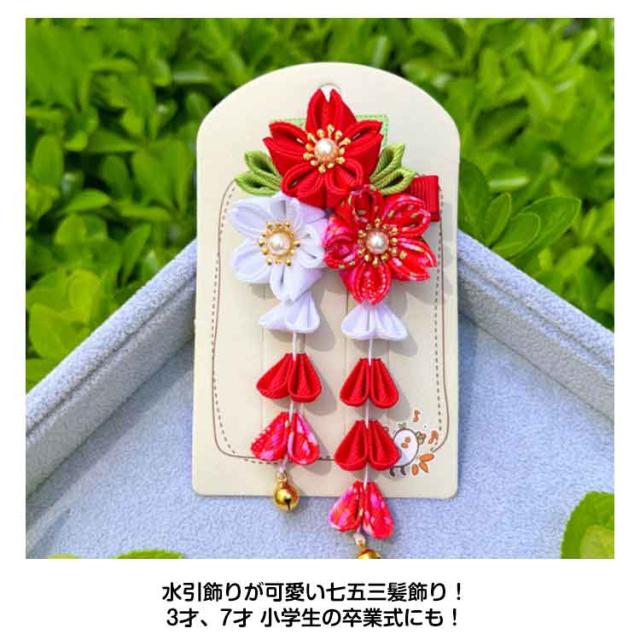 | 七五三髪飾り 七五三などのお祝いシーンに、繊細なつまみ細工の髪飾り。 水引飾りが可愛い七五三髪飾り!3才、7才 小学生の卒業式にも! 1つあればお顔周りがパッと華やぐので、特別な日の装いのワンポイントとして最適です。 | |