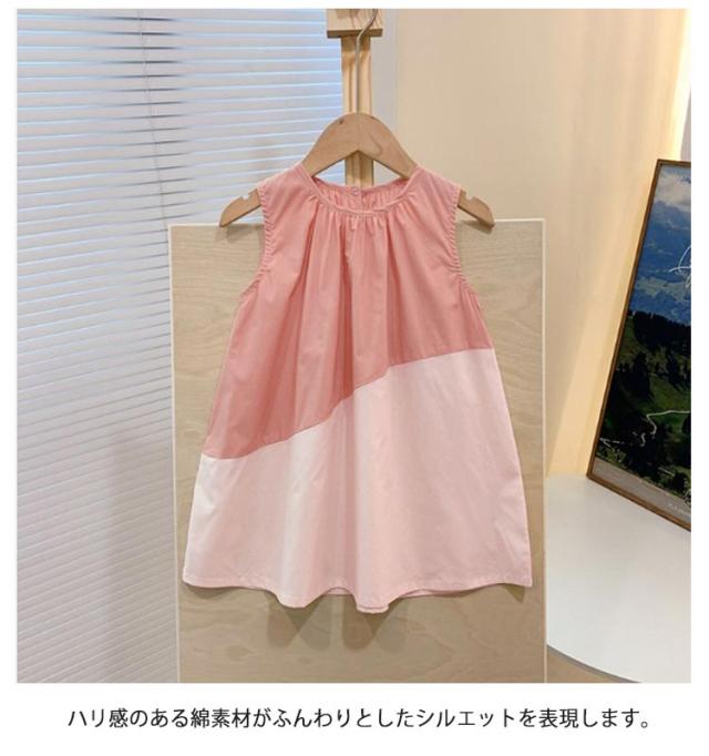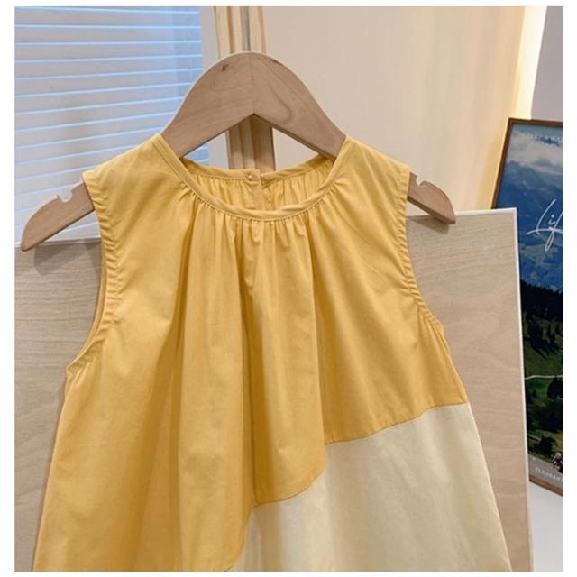 女の子 ワンピース 韓国子供服 Aライン 子供服 子供服 ワンピース キッズ 子ども服 夏 切り替え配色ワンピース ノースリーブ フレアワンピース タンクワンピース 送料無料 可愛い キッズワンピース 子供ワンピース ノースリーブ イエロー グリーン キッズ