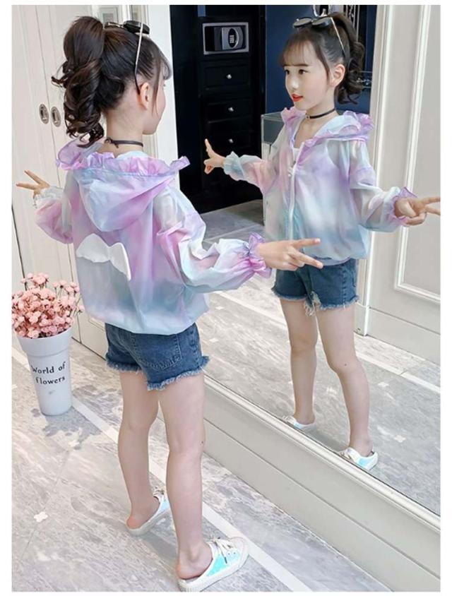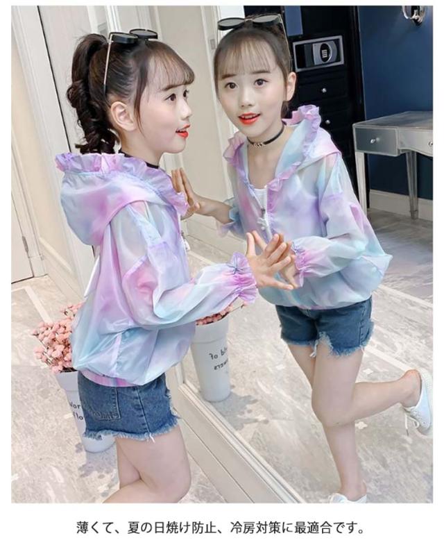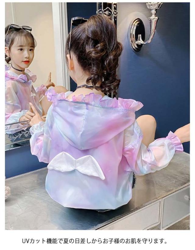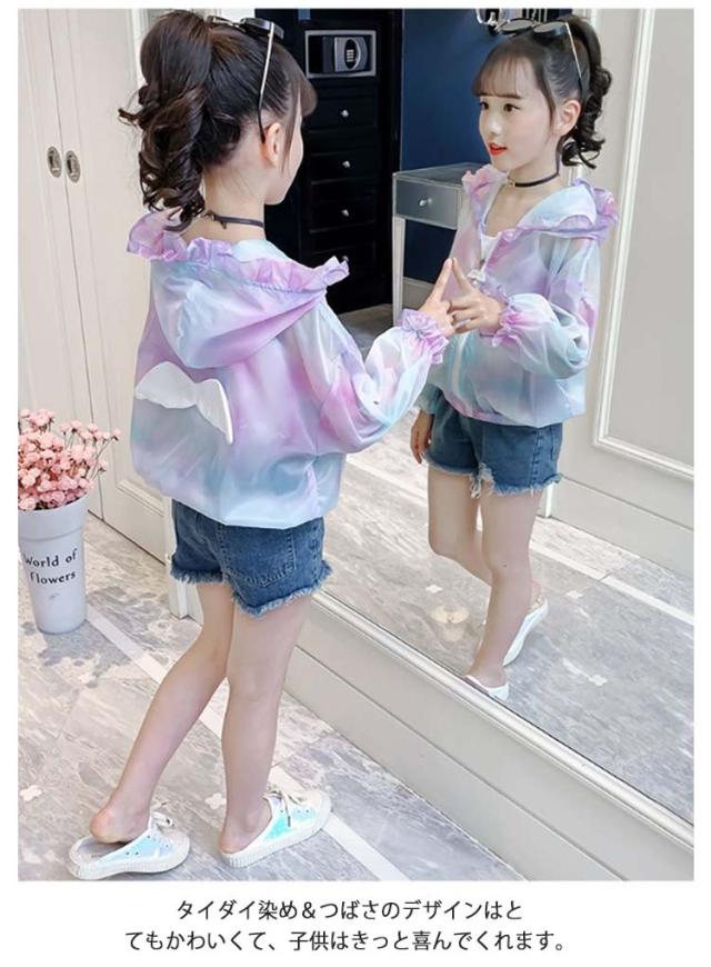 ベビー ラッシュガード UVカット 冷房対策 タイダイ染め 服 翼 かわいい ピンク パーカー キッズ 女の子 つばさ 男の子 長袖 日除け ジャケット 子供 海 プール 子供服 熱中症対策 グラデーション 春 夏 軽い 涼しい UVカット