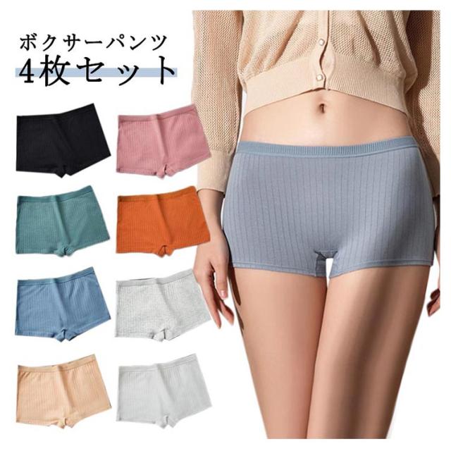 肌着 ボクサーパンツ 4枚組 ボックスショーツ ショーツ ショートパンツ ボクサーパンツ ボクサーパンツ ボクサーパンツ 下着 スパッツ ショーツ ハイウエスト スリム 綿 レディース