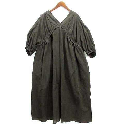 【中古】レディラックルカ LADY LUCK LUCA リネン ボリューム ロング ワンピース Vネック 七分袖 2022SS カーキ 322107009 レディース
