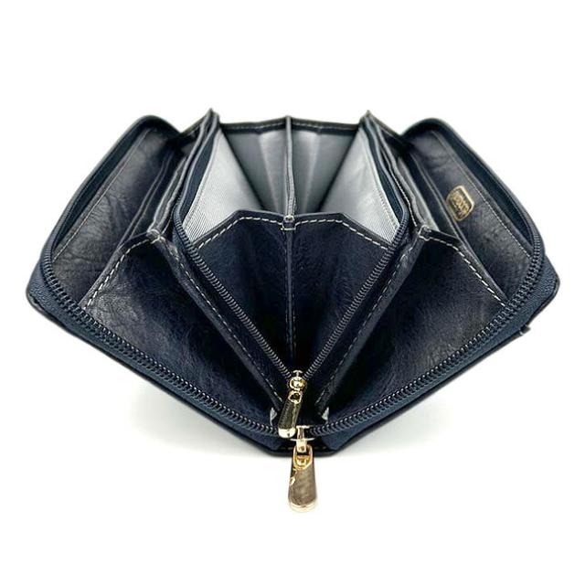小銭入れはL字ファスナー開閉で大きく開いて出し入れしやすい。