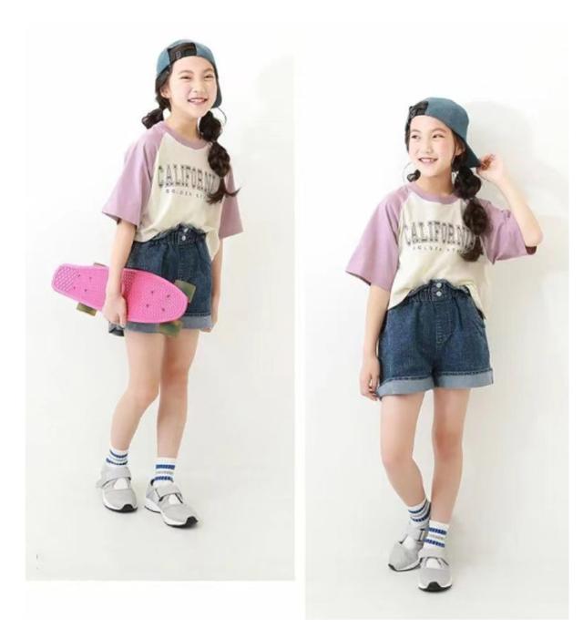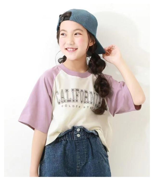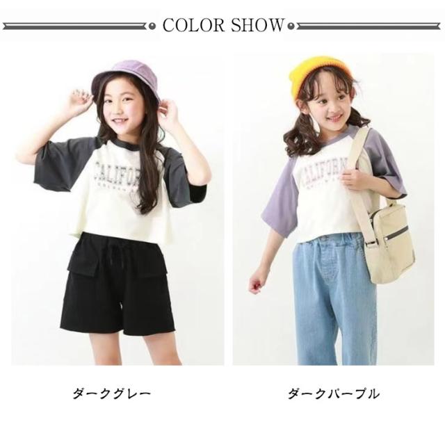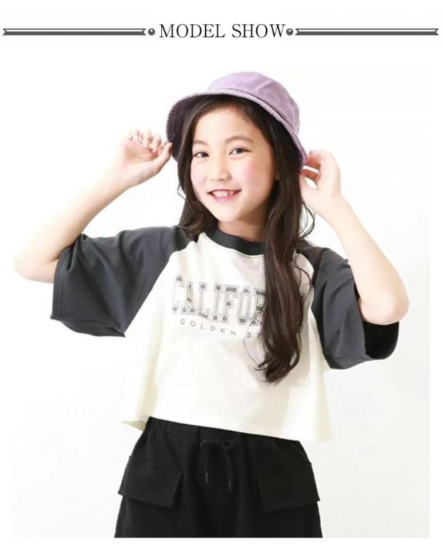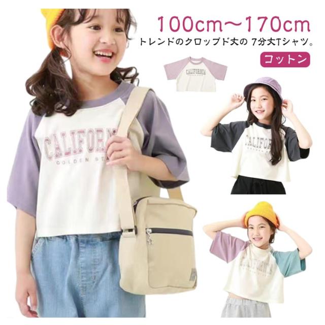 ジュニア tシャツ 女の子 七分袖 トップス 7分袖ラグランTシャツ キッズ ラグランTシャツ 子供服 綿 女の子 ロンT 半袖Tシャツ ラグランスリーブ 半袖 春 夏 夏用 tシャツ クロップド丈 ガールズコレクション トップス 綿製