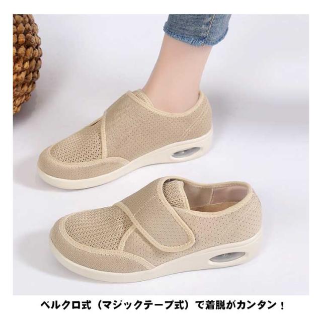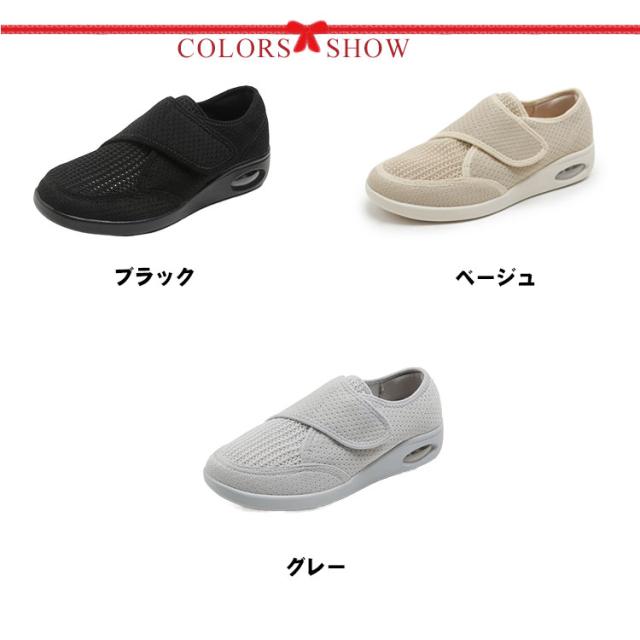 脱ぎ履き簡単 メッシュ レディース 靴 介護靴 軽量 介護スニーカー 外反母趾 リハビリシューズ 幅広 婦人用 通気 エアークッション 面ファスナー 介護シューズ 滑り止め 疲れにくい コンフォートシューズ 女性用 屋外 介護 スリッポン 靴 普段使い プレゼント