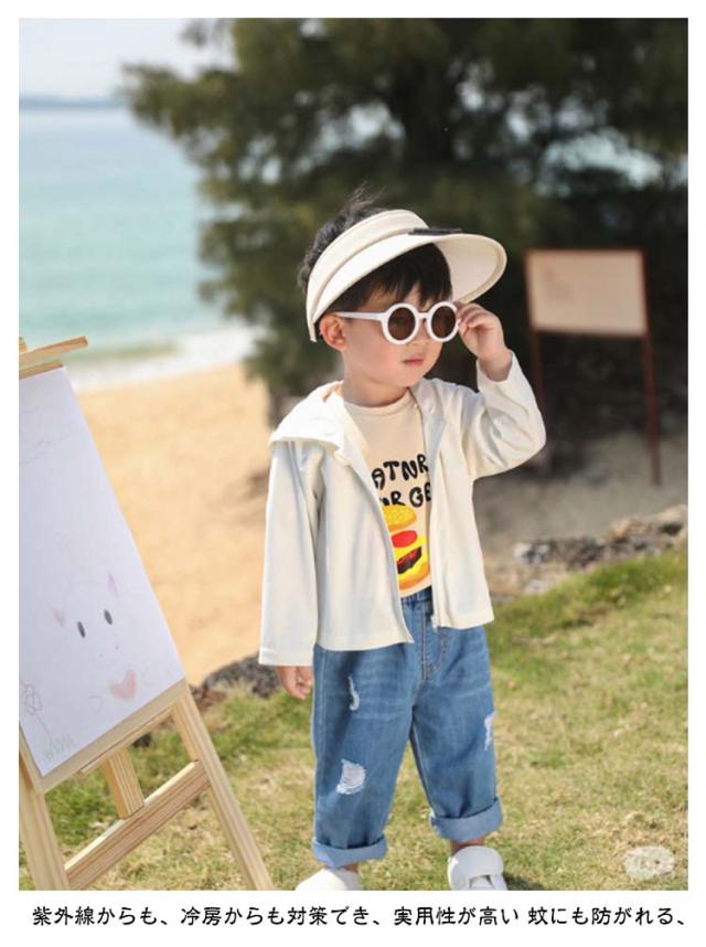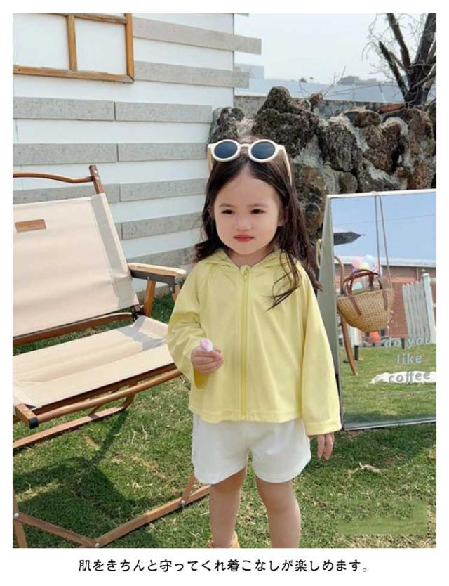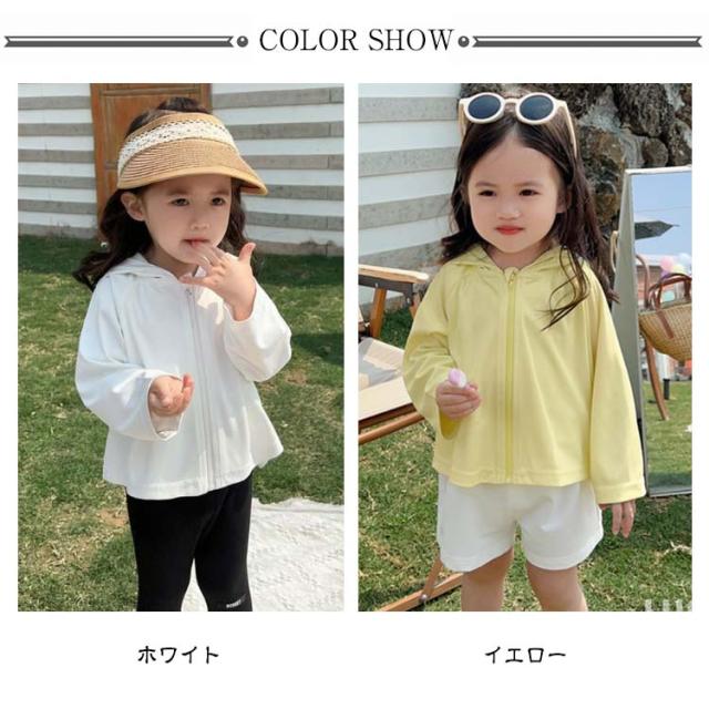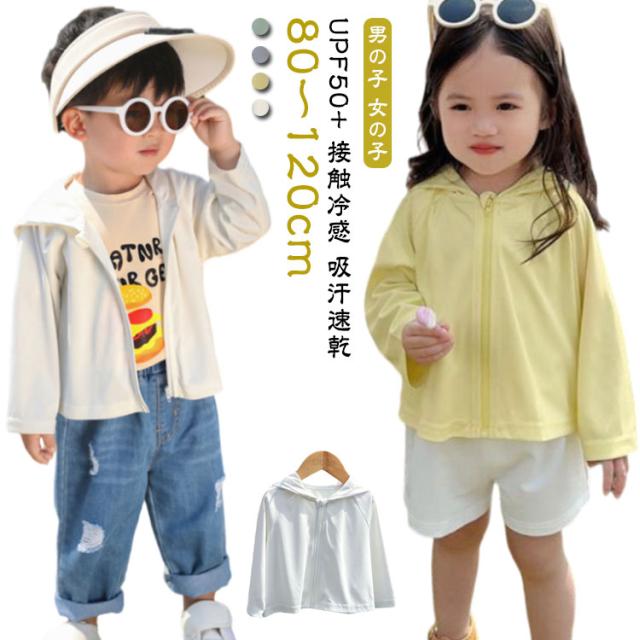 キッズ ベビー 可愛い UPF50+ 女の子 凉しい 長袖 110cm 速乾 男の子 80cm 吸汗 子供 90cm 100cm 接触冷感 120cm トレーナー トップス ジュニア ジップパーカー カーディガン フード付き 羽織り 薄手 UVカット UV対策 紫外線対策 無地 パーカー