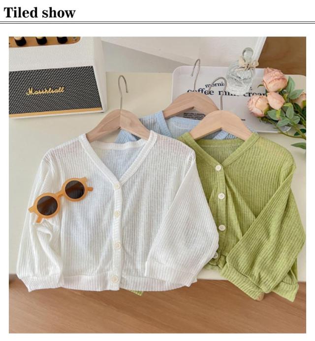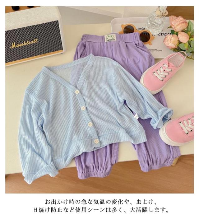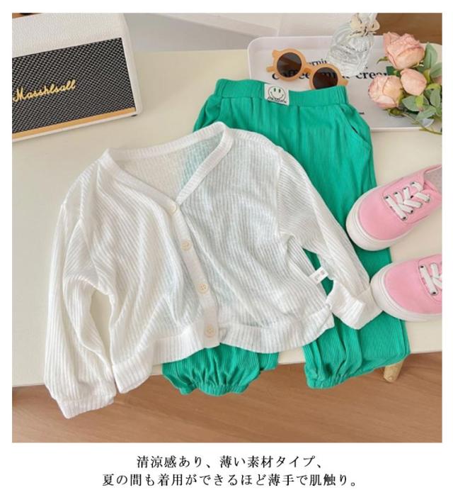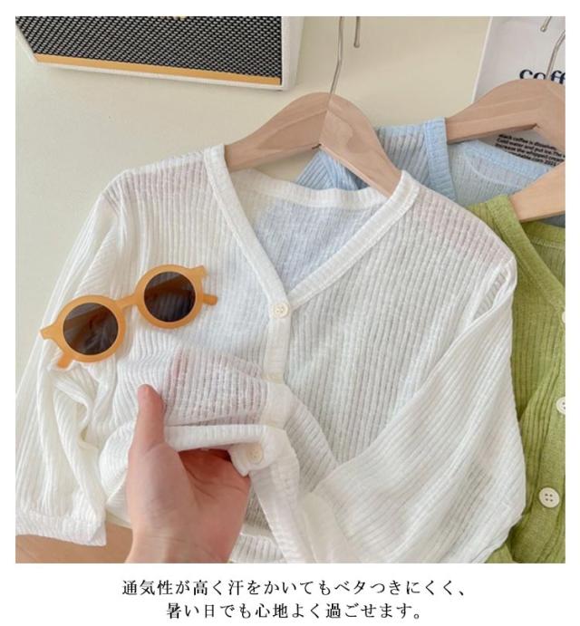 無地 女の子 サマーカーディガン uvカット 薄手 カーディガン vネック キッズ 夏 紫外線対策 ベビー服 子供 長袖 冷房対策 UV対策 日焼け止め シンプル カジュアル 羽織り 柔らかい 日焼け防止 通気 110 73 80 90 100 ラッシュガード