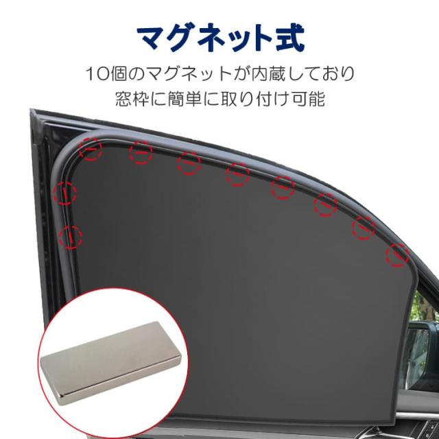 カーテン上部に10個のマグネットが内蔵されており、車の窓枠に取り付けることができます。
