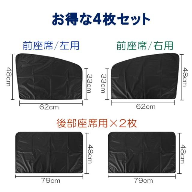 マグネット式の車用カーテンの4枚セットです。(運転席1枚、助手席1枚、後部座席2枚)
