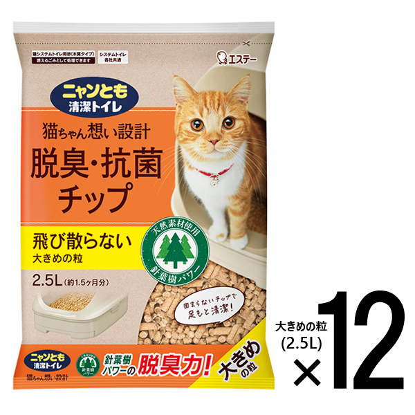 ニャンとも清潔トイレ 脱臭・抗菌 チップ 大きめの粒 (2.5Lx12個入) [【2ケース】 ネコ ねこ 猫砂 猫トイレ にゃんとも 臭わない 消臭 針葉樹 ペット用品 ケース販売 2.5リットル 12袋入 エステー]