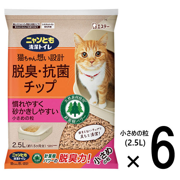 ニャンとも清潔トイレ 脱臭・抗菌 チップ 小さめの粒 (2.5L×6個入) [【1ケース】 ネコ ねこ 猫砂 猫トイレ にゃんとも 臭わない 消臭 針葉樹 ペット用品 ケース販売 2.5リットル 6袋入 エステー]
