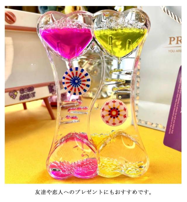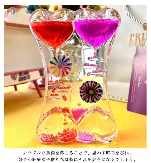 オイルタイマー 水時計 砂時計 油滴 ハート 液体タイマー カラフル 卓上 インテリア 子供 大人 おもちゃ ストレス解消 誕生日 クリスマス プレゼント 送料無料