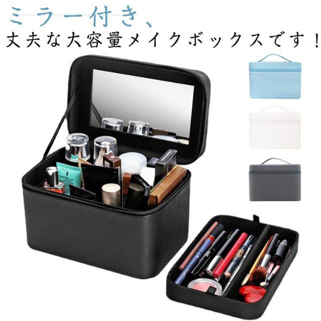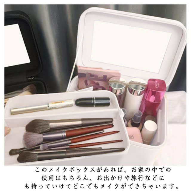 | ミラー付き、仕切りで毎日使う大切なお化粧品をしっかりガード、丈夫な大容量メイクボックスです! 携帯収納、耐圧防湿、防水防塵! ハンドルがついているので、持ち運びにも便利です。 このメイクボックスがあれば、お家の中での使用はもちろん、お出かけや旅行などにも持っていけてどこでもメイクができちゃいます。 | |