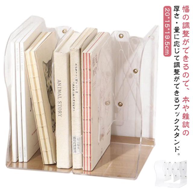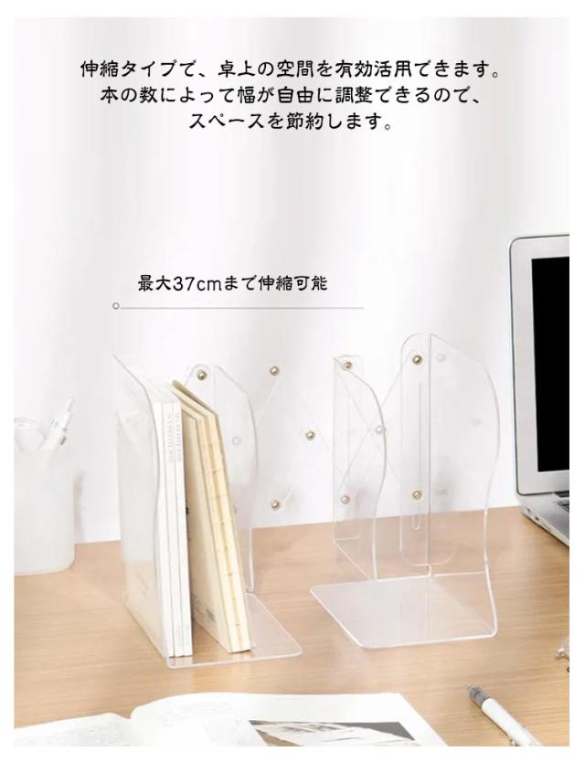 ブックエンド ブックスタンド 伸縮 卓上 収納 倒れない 本立て サイズ調節可能 クリア アクリル 雑誌 ファイル 新聞 書類 多機能 事務用品 おしゃれ シンプル 伸縮自在 折りたたみ リビング デスク 子供机 勉強机 オフィス デスク収納 卓上本棚