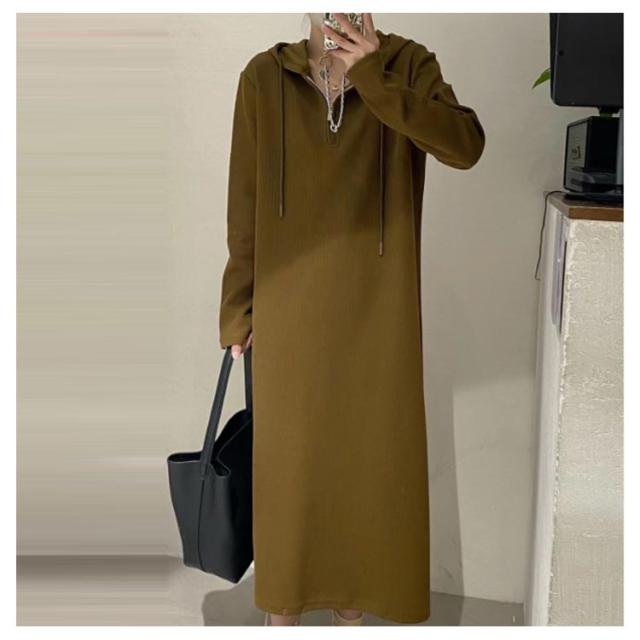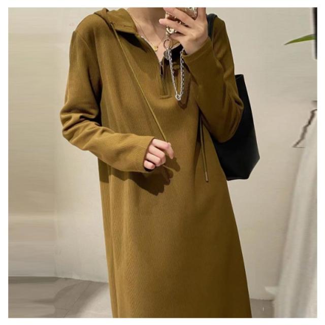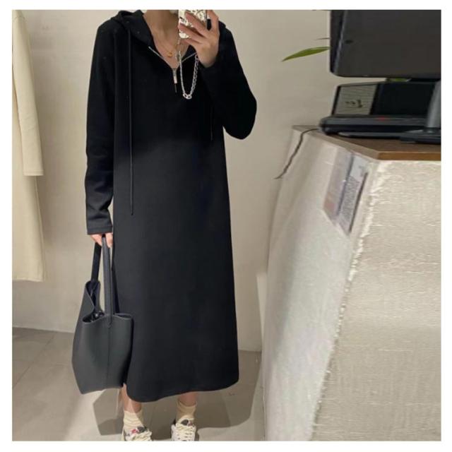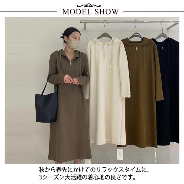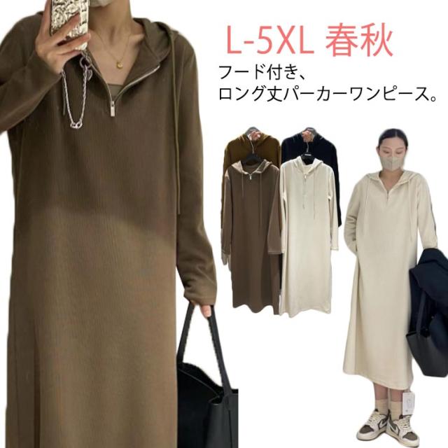 ハーフジップ ワンピース ロングワンピース パーカーワンピース 長袖 大きいサイズ ゆったり フード付き 春 秋 ロング丈 カジュアル 体型カバー きれいめ おしゃれ L XL 2XL 3XL 4XL 5XL