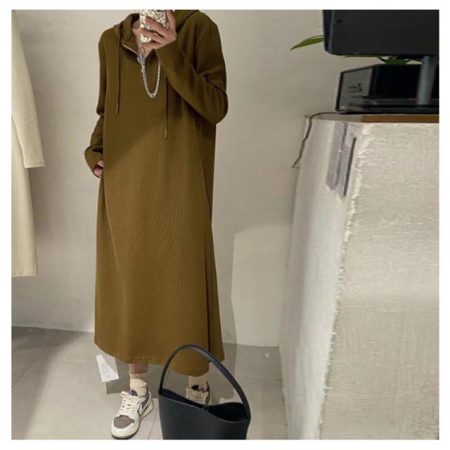 | フード付き、ロング丈パーカーワンピース。 秋から春先にかけてのリラックスタイムに、3シーズン大活躍の着心地の良さです。 ゆったり設計のワンピースなのでストレスなしで着ることができます。 マタニティワンピとしてもおすすめ。 一枚で着るのはもちろん、レギンスやタイツと合わせても可愛い一着です。 | |