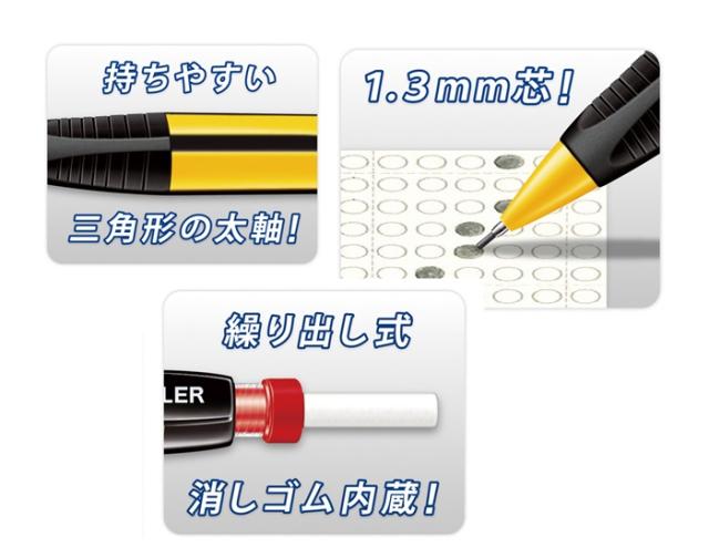 鉛筆の芯とほぼ同じ1.3mm芯のシャープペンシルです。