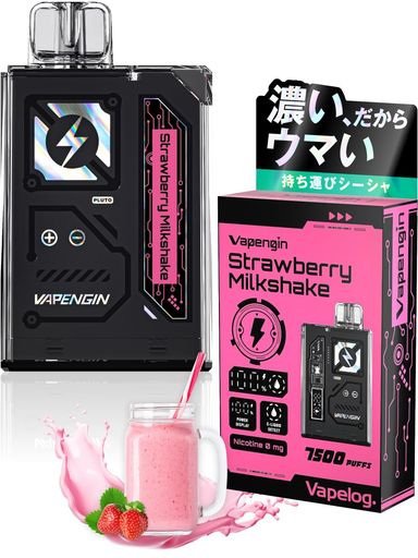 VAPENGIN ベイプ 爆煙 使い捨て 本体 電子タバコ シーシャ 持ち運び ニコチンなし タールなし 充電式 充電 フレーバー 水タバコ 使い切り VAPE ベープ 小型 ベイプエンジン 7500 ストロベリーミ…