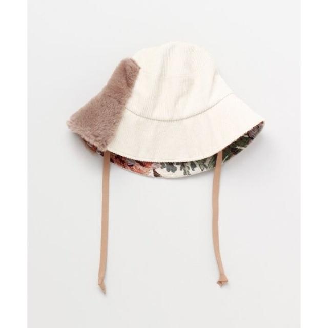 コーデュロイ地に、花柄織とフェイクファーのパッチワークでボヘミアンテイストの帽子。落ち着いた色使いでエレガントな印象を与えてくれるHAT。