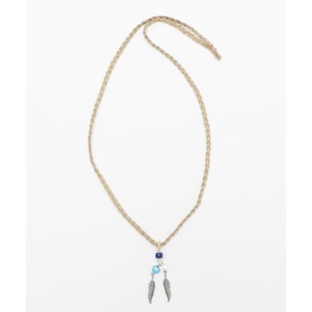 海面から光が差し込む神秘的な海の色をイメージした蓄光ホタル玉のネックレス。ネイティブアメリカンのフェザーモチーフと組み合わせました。編みこまれた革紐とホワイトハーツ調のパーツが目を惹きます。