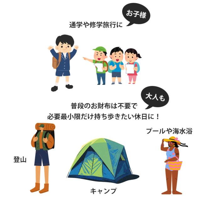 ■コンパクトなのにカードもお札も小銭も入る二つ折り財布です。必要最小限の容量のお財布をお探しの方にぴったりです。お子様の通学、修学旅行から、お仕事時の携帯用、プライベートでのアクティビティ時用にもお勧めです。