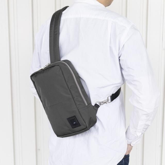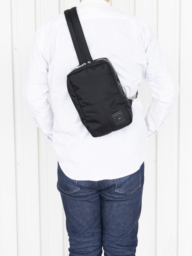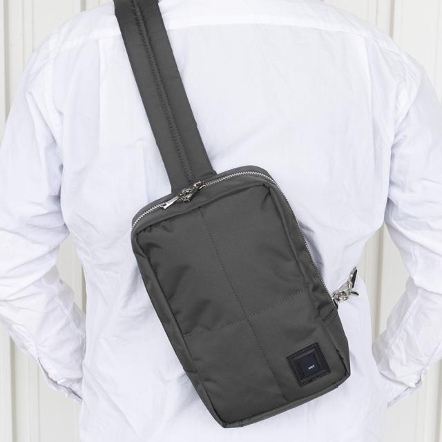 上質なナイロンをボンディングした存在感のあるボディバッグです。張りが出て荷物の量に関わらずフォルムをキープしてくれます。