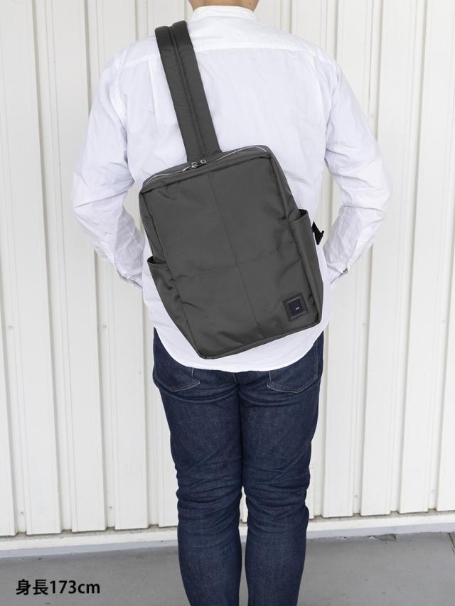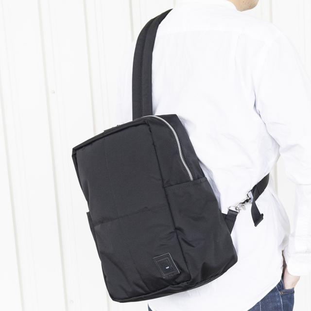 上質なナイロンをボンディングした存在感のあるボディバッグです。張りが出て荷物の量に関わらずフォルムをキープしてくれます。