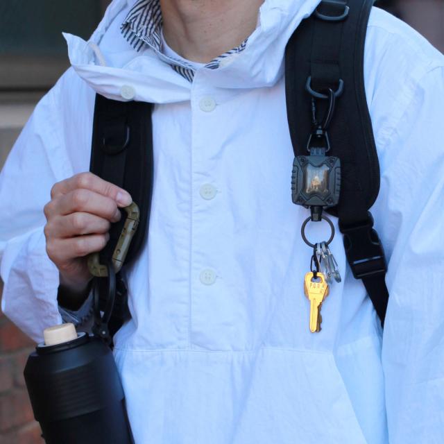 無骨なミリタリーテイストのリール式キーホルダー