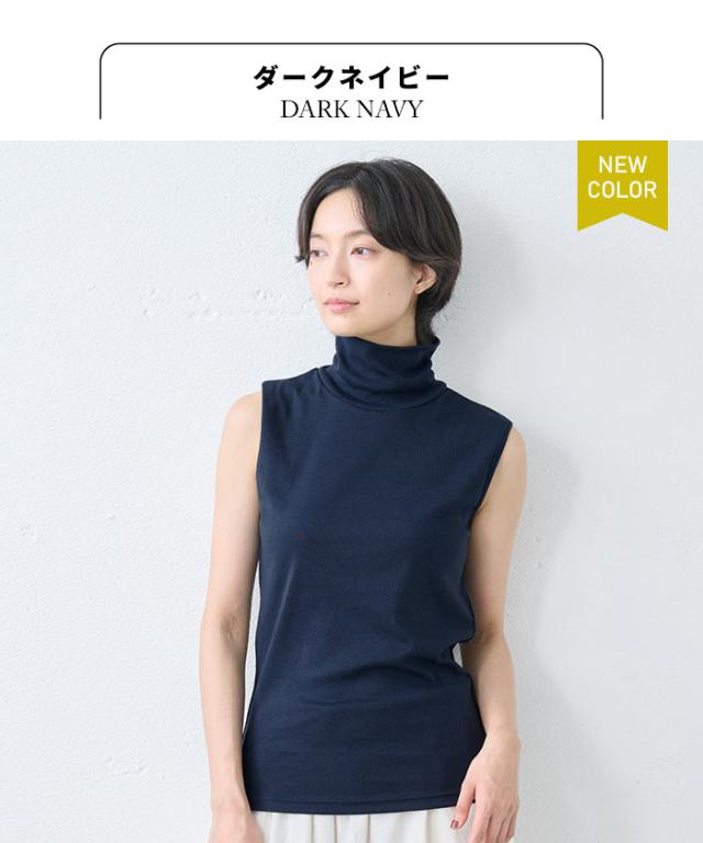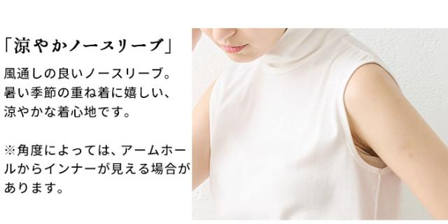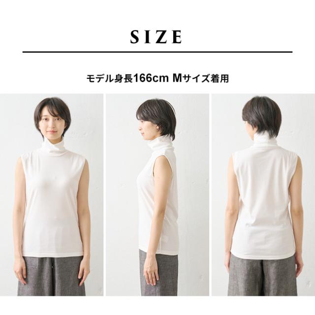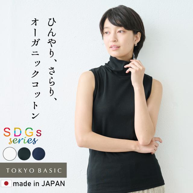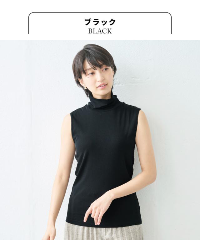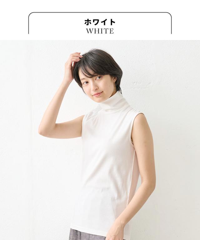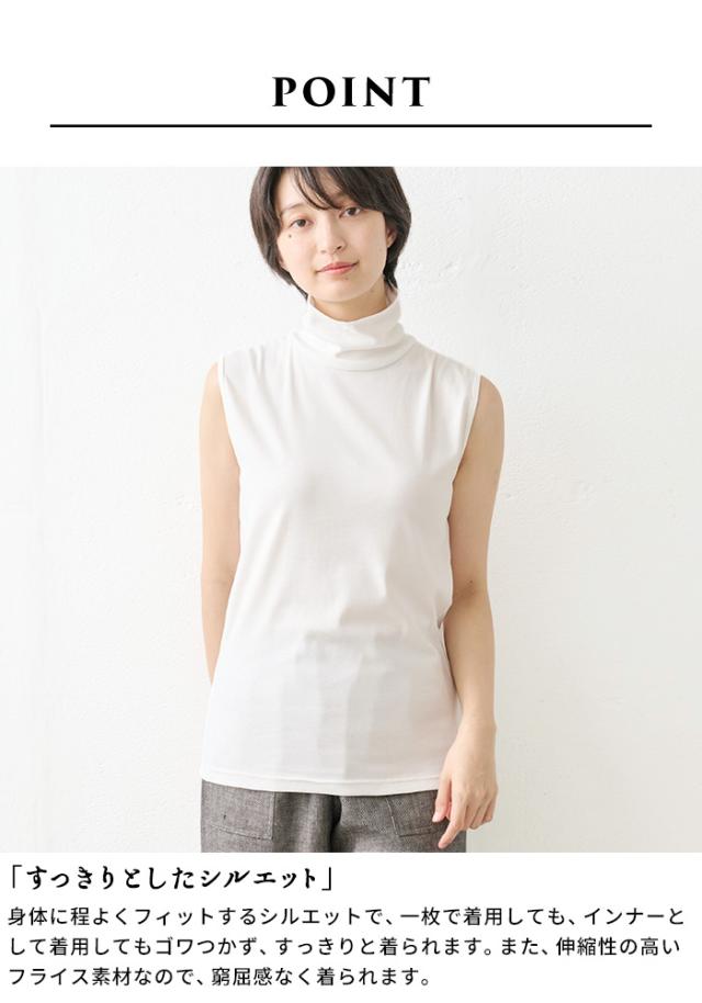 オーガニックコットン 強撚 フライス ノースリーブ タートル 日本製 / タートルネック 半袖 綿100% 接触冷感 薄手 40代 50代 60代 女性 ファッション インナー tシャツ ノースリ レディース 夏用 カットソー 薄め 首元 日除け