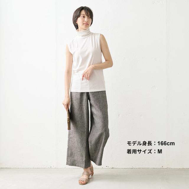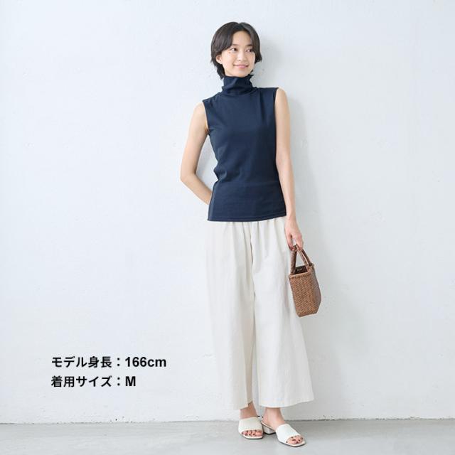 オーガニックコットン 強撚 フライス ノースリーブ タートル