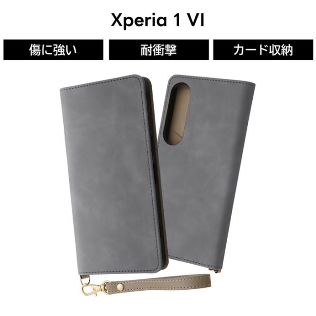 Xperia 1 VI ケース 手帳型 Xperia1VI SO-51E エクスペリア グレー レザー ストラップ付 耐衝撃 丈夫 シンプル ソフト ハード スマホケース カード収納