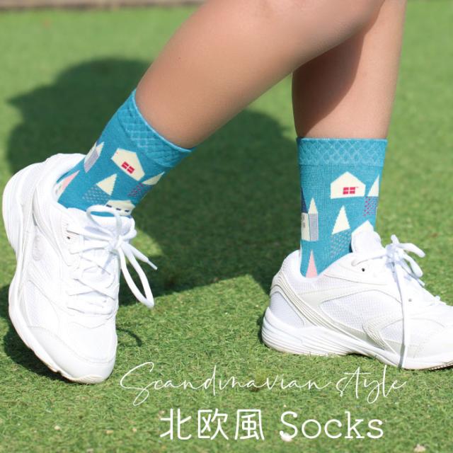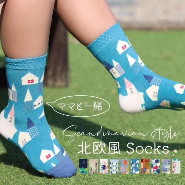 北欧柄靴下親子コーデもできるお揃い柄クルー丈