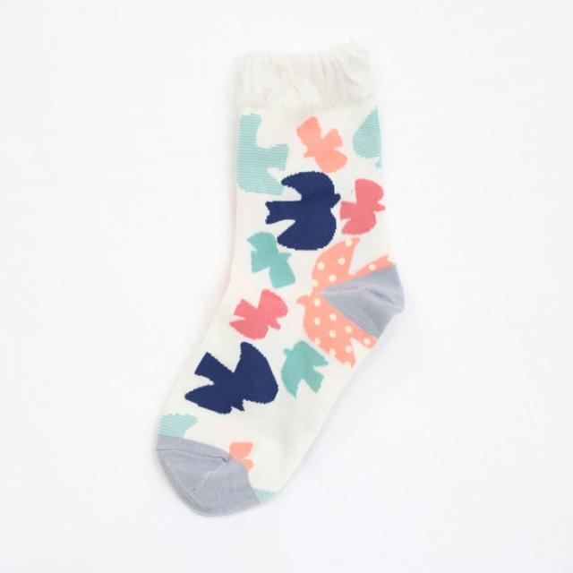 | 特長 | ママもキッズもお揃いコーデができる綿混クルー丈。 「北欧柄」靴下。厚すぎずオールシーズンご着用頂けます。 |