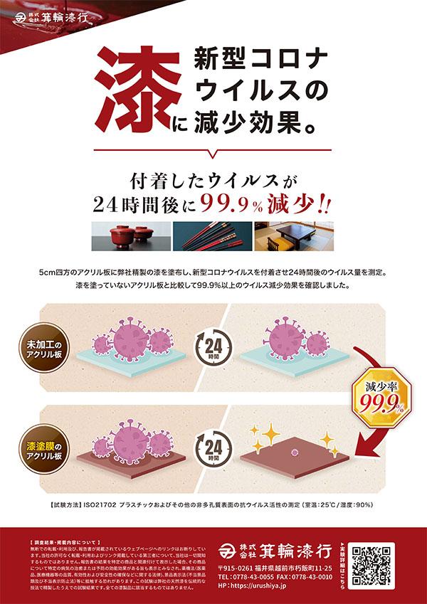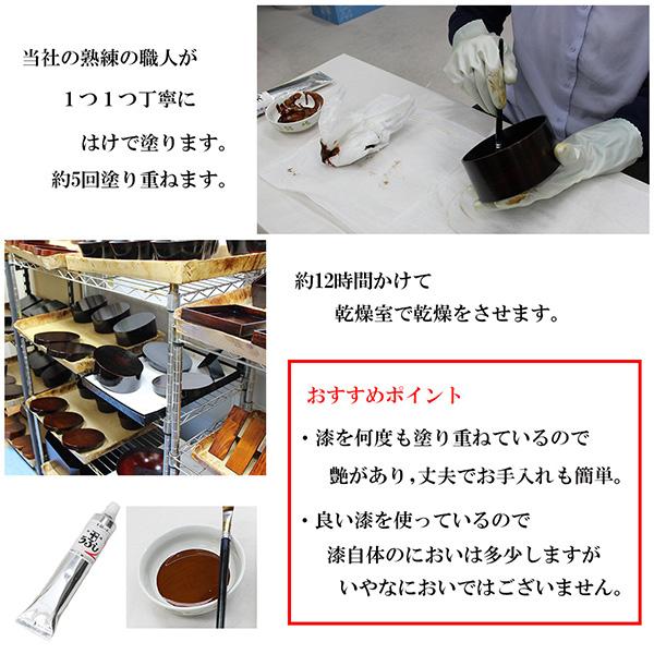 当店では国内漆メーカーの漆を塗っていて、抗菌作用の効果が実証されており、安心・安全・健康的にお使いいただけます。