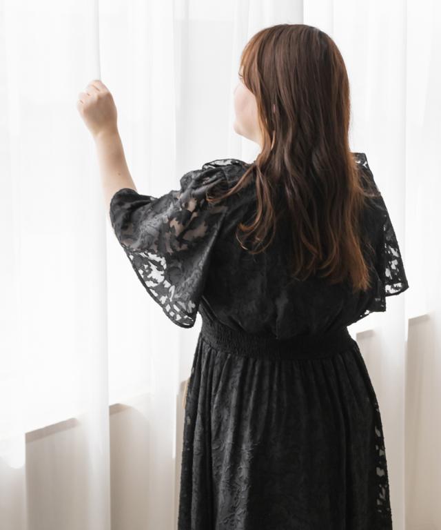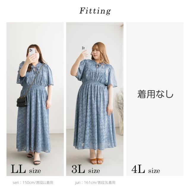 | LLを着て程よいサイズ感でした。バストやヒップは余裕があって、ウエストはシャーリングになっているから柔らかい窮屈感がありません。楽ちんな着心地だけど、メリハリのあるシルエットになっていてすっきりと着こなせます。フリルやリボンなど可愛いポイントがあるものの、大人っぽい花柄生地で仕上げているから、幼くならずに上品な女性らしい着こなしになれます◎袖は裏地無しほのかな透け感があるのも女性らしくて可愛いです。裏地がカットソー素材だから吸水性もあって、暑い時期も快適な着心地です♪ |