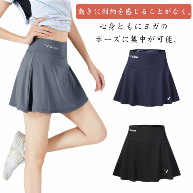 | 動きに制約を感じることがなく、心身ともにヨガのポーズに集中が可能。 ホールド感も高く、ウエアが伸びやかな動きに合わせて、気持ちいいエクササイズをサポートします。 インナーパンツと一体型のデザイン、安心して運動できる。 太ももにポケットが付いていてスマホなど簡単収納ができるので、とても便利です。 テニス、ヨガ、スポーツ、ゴルフ、ランニング、フィットネス、ビーチ、バレーボール、アウトドア、ジュアル服、日常着、ルームウェアなど様々なシーン着用感あるのスコート。 ンプルなデザインなので10代、20代、30代、40代、50代、60代と幅広い年代で合わせやすく使いやすいアイテムとなります。 | |