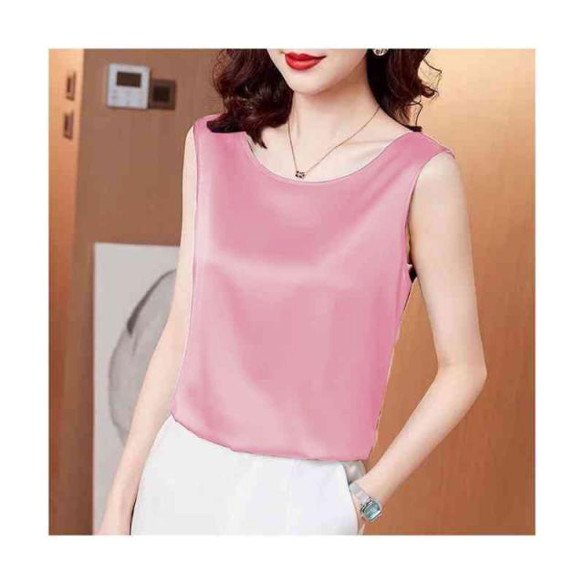 タンクトップ トップス ノースリーブ ブラウス 光沢感 スーツインナー インナータンクトップ レディース おしゃれブラウス 大きいサイズ ショート丈 フォーマルブラウス 重ね着 肌着 透けない ブラ紐隠し 薄手 ゆったり 大人 無地 オフィス 春夏 送料無料