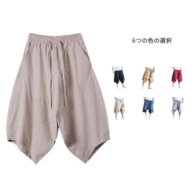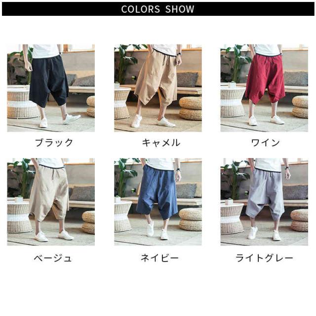 送料無料 袴パンツ ワイドパンツ 和風 メンズ ハカマパンツ アジアン ファッション 大きいサイズ ワイドパンツ アジアン パンツ ゆったり ブラック キャメル ワイン ベージュ ネイビー ライトグレー