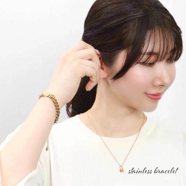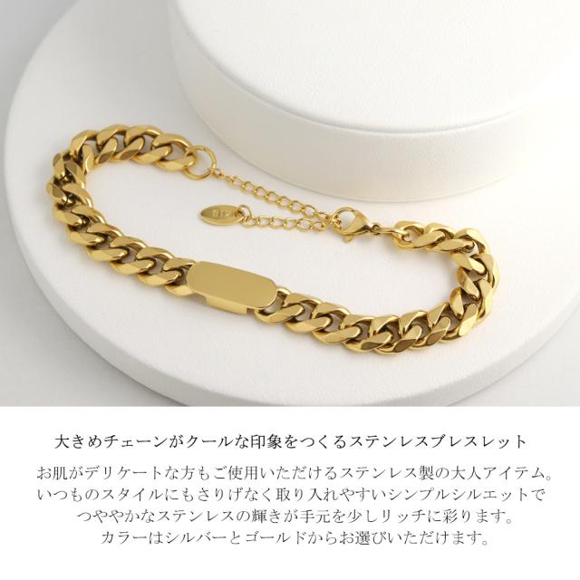 大きめチェーンがクールな印象をつくるステンレスブレスレット。