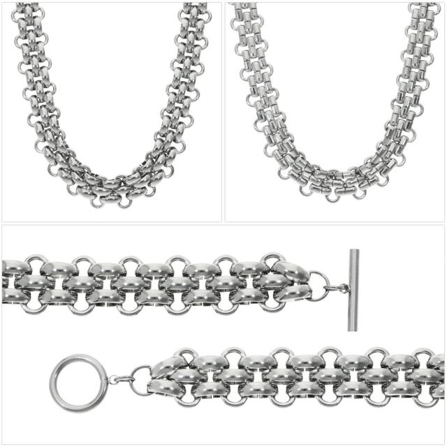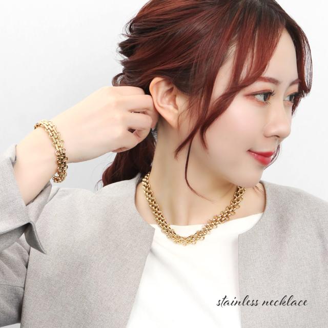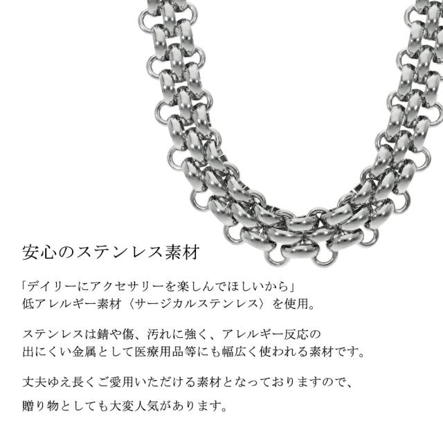 かっちりとしたチェーンがクールな印象をつくるステンレスネックレス。