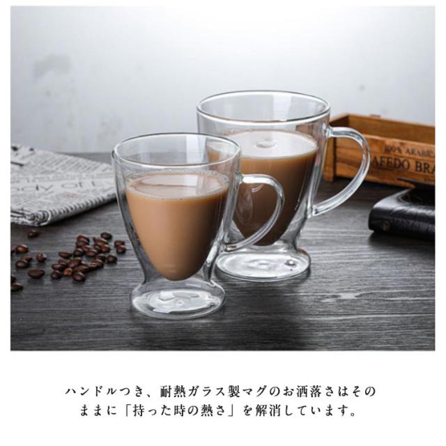 ダブルウォールグラス 2個セット 取っ手付き コップ 耐熱ガラス 二重グラス カップ おしゃれ 200ml 300ml 400ml 透明 二重構造 二重グラス 北欧 食器 洗いやすい お茶 コーヒー お酒