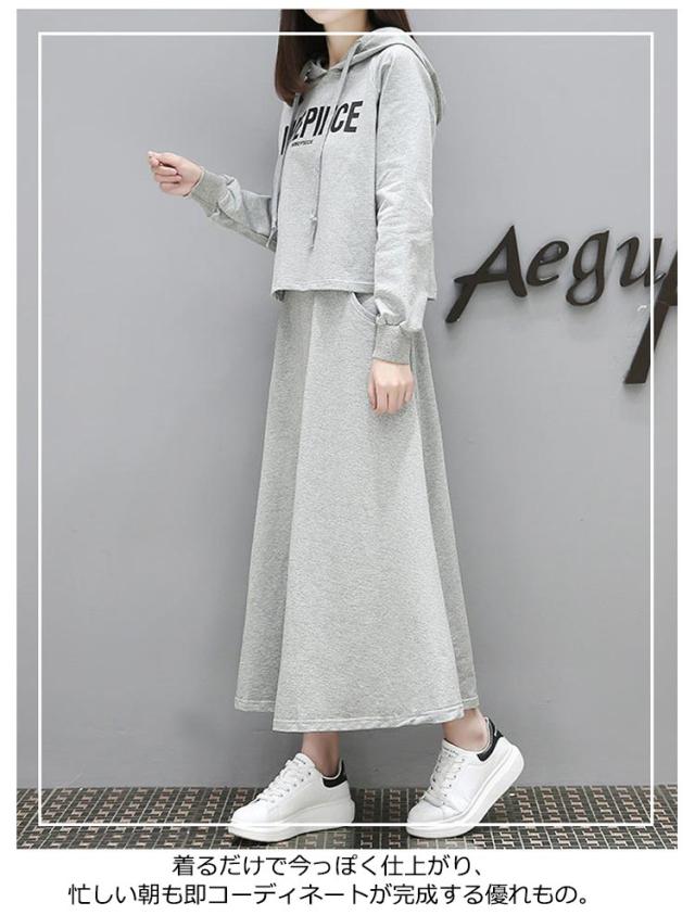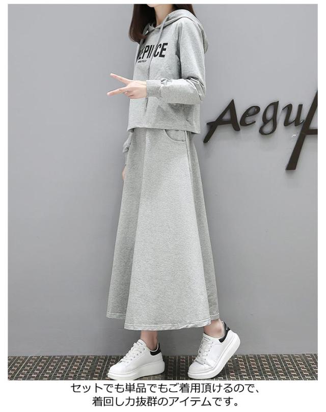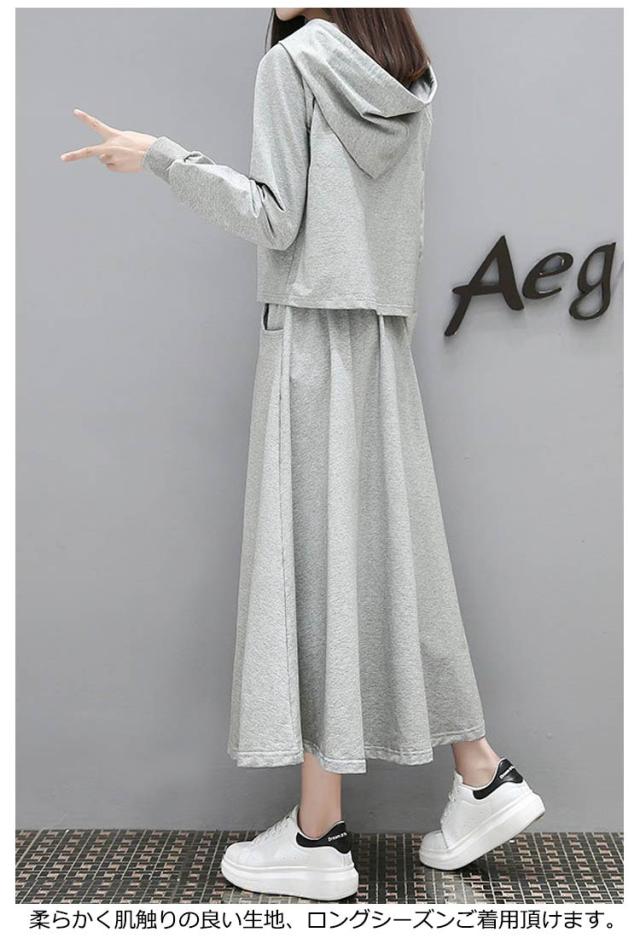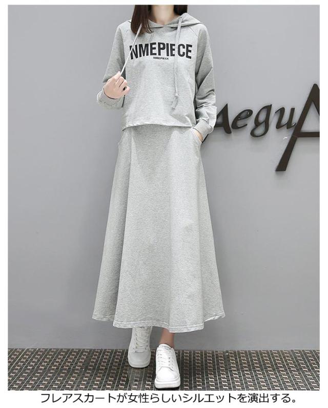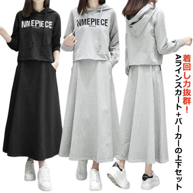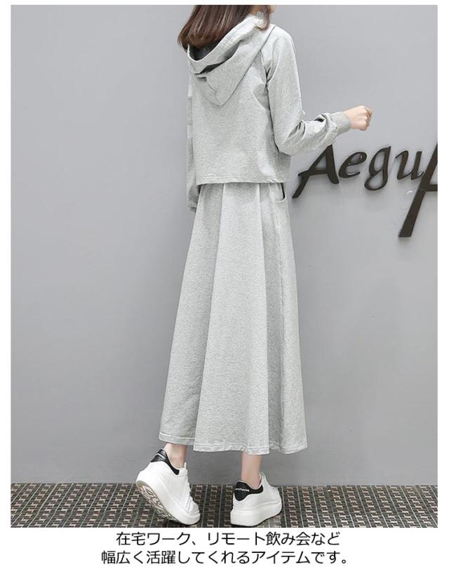 パーカー 薄手 フレアスカート セットアップ レディース スウェット 上下セット 春パーカー スカート 長袖 2点セット 体型カバー フード付き 部屋着 ルームウェア 春服 夏服 韓国ファッション カジュアル おしゃれ 送料無料