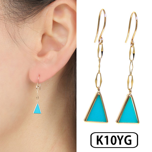 ターコイズ トルコ石 フック ピアス トライアングル K10YG 10k 10金 イエロー ゴールド 揺れる