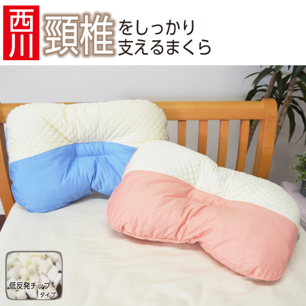 【西川】 頚椎をしっかり支える枕 63×43cm 肩こり 首こり 頸椎支持型 健康枕 安眠枕 ストレートネック 横向き寝 頭部首肩サポート かさ減りしにくい低反発チップ素材を使用でしっかりさが長持ち 中央部が凹形状で後頭部をしっかり支える ピローまくら
