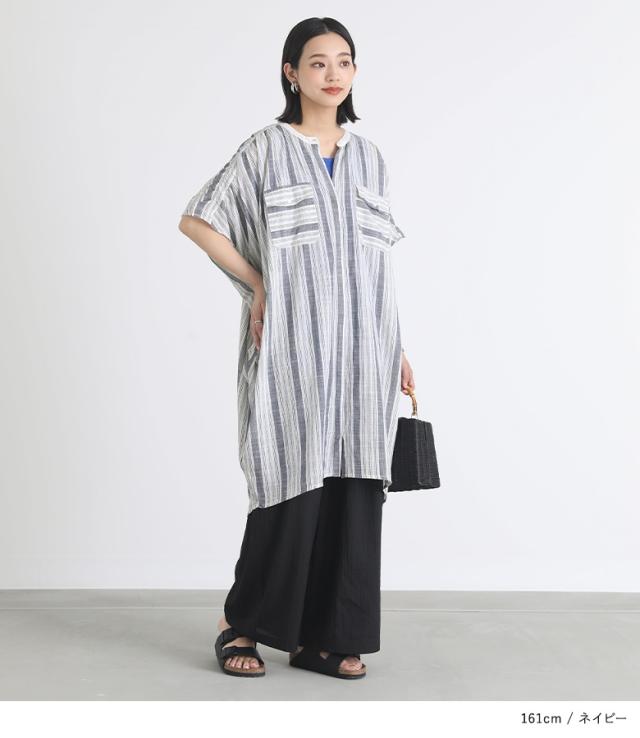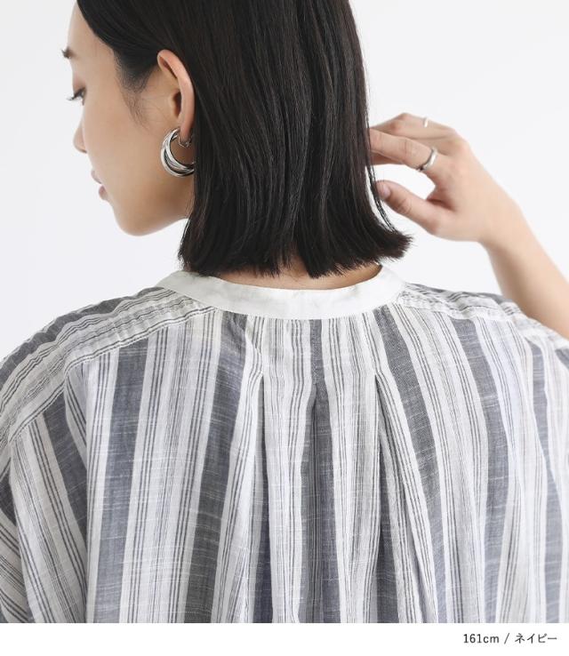 ブラウス トップス レディース シャツ 羽織 半袖 シアー 透け感 ストライプ柄 スラブストライプ柄 チュニック丈 コクーン インド綿 コットン100% 綿100% ゆったり 体型カバー 清涼感 【トップス】 シャツ・ブラウス ロングシャツ ボタンシャツ 前開きシャツ 柄シャツ sheertops キーネック バンドカラー 五分袖 おうちで洗える カジュアル シンプル ナチュラル Sサイズ Mサイズ Lサイズ LLサイズ 3Lサイズ XLサイズ フリーサイズ ぽっちゃり 大きいサイズ 10代 20代 30代 40代 50代 60代 大人女子 大人可愛い お洒落可愛い 大人カジュアル ベーシック ニュアンス ラフ エフォートレス オフィスカジュアル 女子会 通勤 通学 お買い物 お出掛け 旅行 リゾート レジャー アウトドア キャンプ プール 海 おしゃれ ベージュ ネイビー 紺[ID]tly0058[スラブストライプ柄コクーンチュニック丈ブラウス]