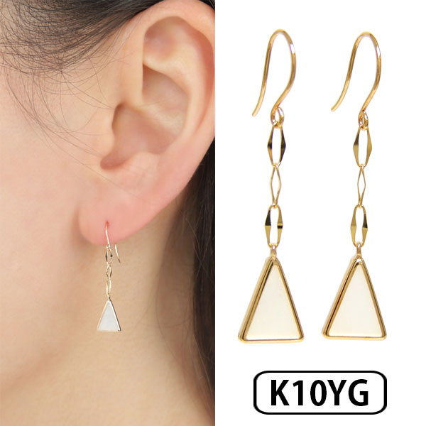 ホワイトシェル フック ピアス トライアングル K10YG 10k 10金 イエロー ゴールド 揺れる